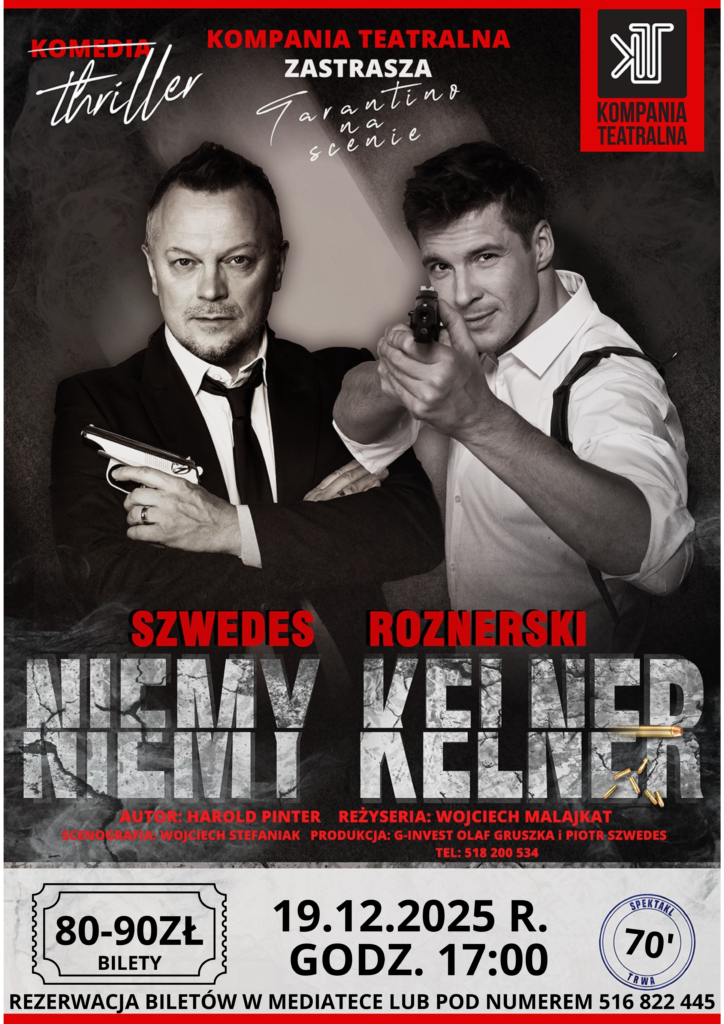 Po ogromnym sukcesie spektaklu „Kłamstwo”, z przyjemnością ponownie gościmy Kompanię Teatralną, która tym razem zaprezentuje znakomitą sztukę „𝙉𝙞𝙚𝙢𝙮 𝙠𝙚𝙡𝙣𝙚𝙧”.