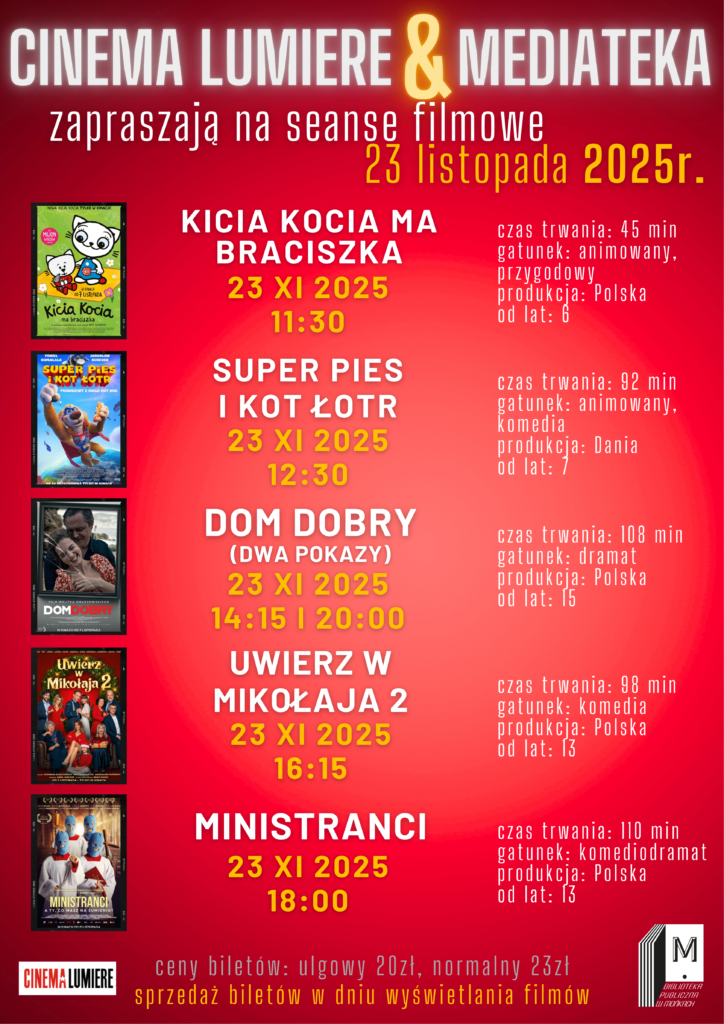 Mediateka i Cinema Lumiere Prezentuje zapraszają na biletowane seanse filmowe w MEDIATECE, które odbędą się 23 listopada 2025 (niedziela) ![]()